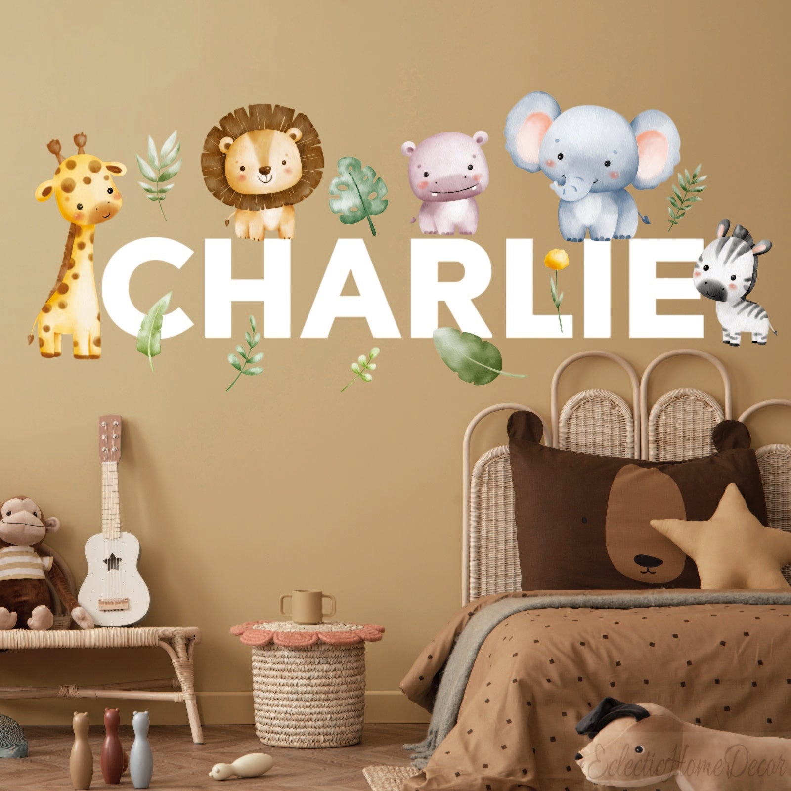 Personalized Jungle Wall Decals - Safari Animal Name Stickers for Nursery, Kids Room Decor, Peel & Stick Baby Boy/Girl Jungle Theme Wall Art