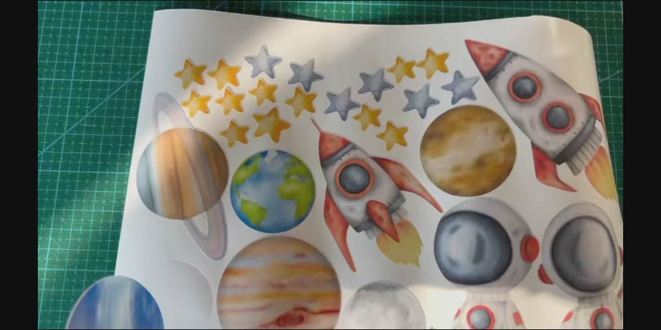 Ideal for boys' bedrooms, nurseries, or play areas, this wall decal brings a playful outer space theme to life. Great for themed parties or as a unique gift for space lovers. Charming playroom decoration. -